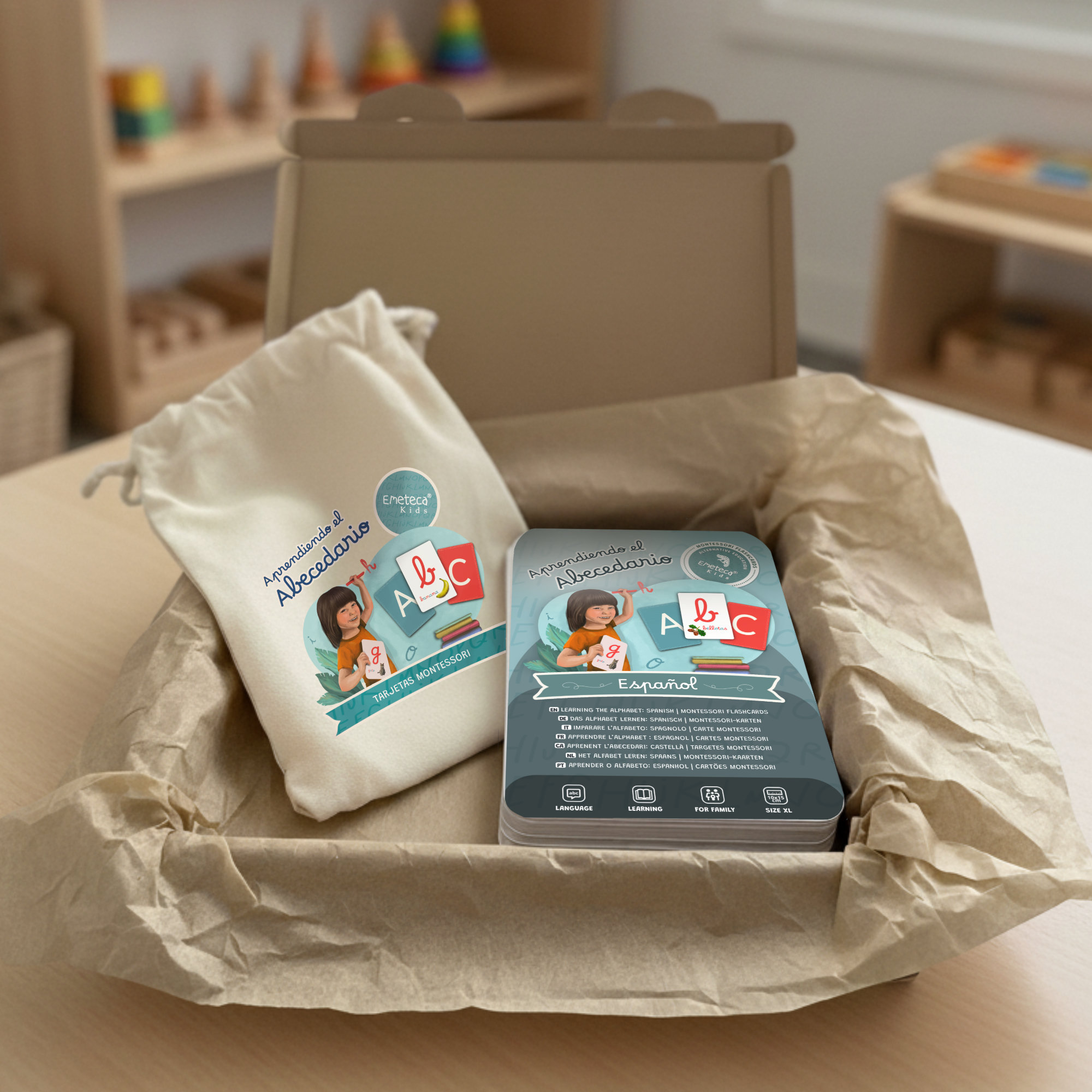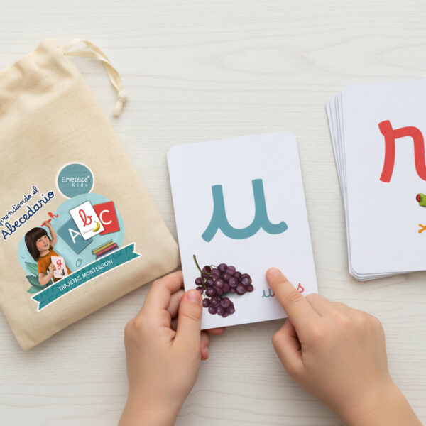 Las tarjetas Aprendiendo el Abecedario: Castellano siguen los principios Montessori de aprendizaje sensorial y autónomo.