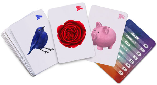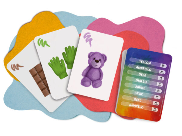 Set de tarjetas Montessori en 8 idiomas para aprender vocabulario, con ilustraciones realistas de los colores y sus tonalidades. Aptas para las distintas etapas de la infancia gracias a su enfoque multilingüe.