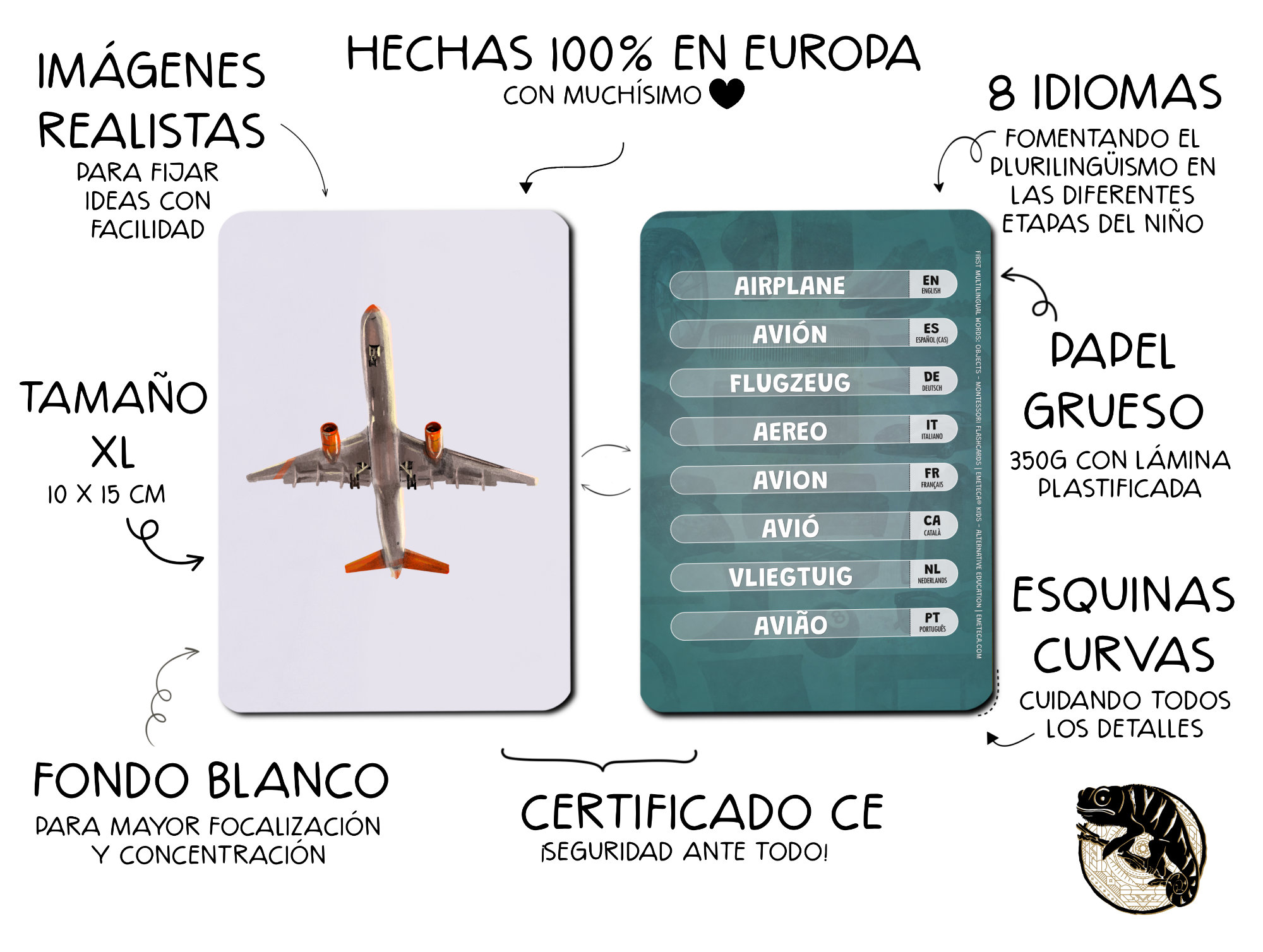Las tarjetas de la colección Primeras palabras multilingües están basadas en la metodología Montessori, promoviendo la autonomía, la exploración y el aprendizaje a través de la experiencia visual y sensorial.