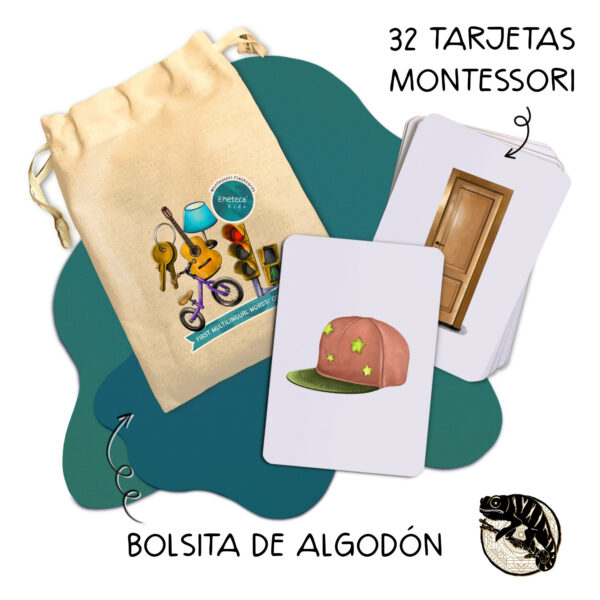Tarjetas Montessori de Objetos · Colección Primeras palabras multilingües · Emeteca® Kids.